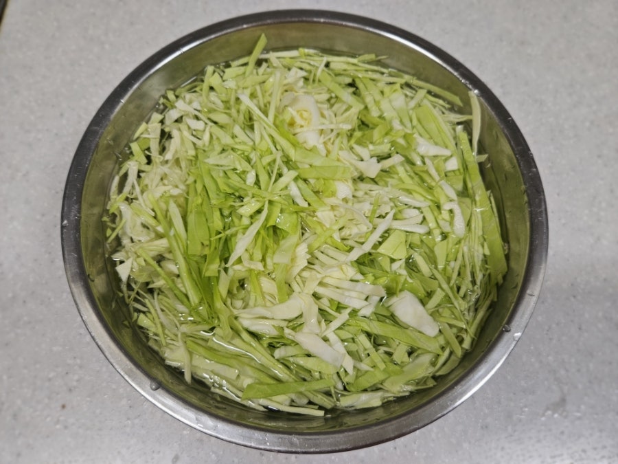 양배추는 채칼로 썰어 주시거나 손으로 썰어