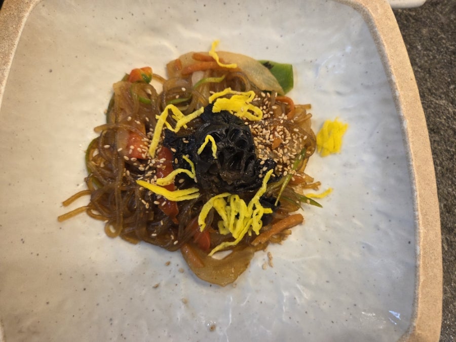 버섯까지 여기에 곁들여 먹는 파채무침과