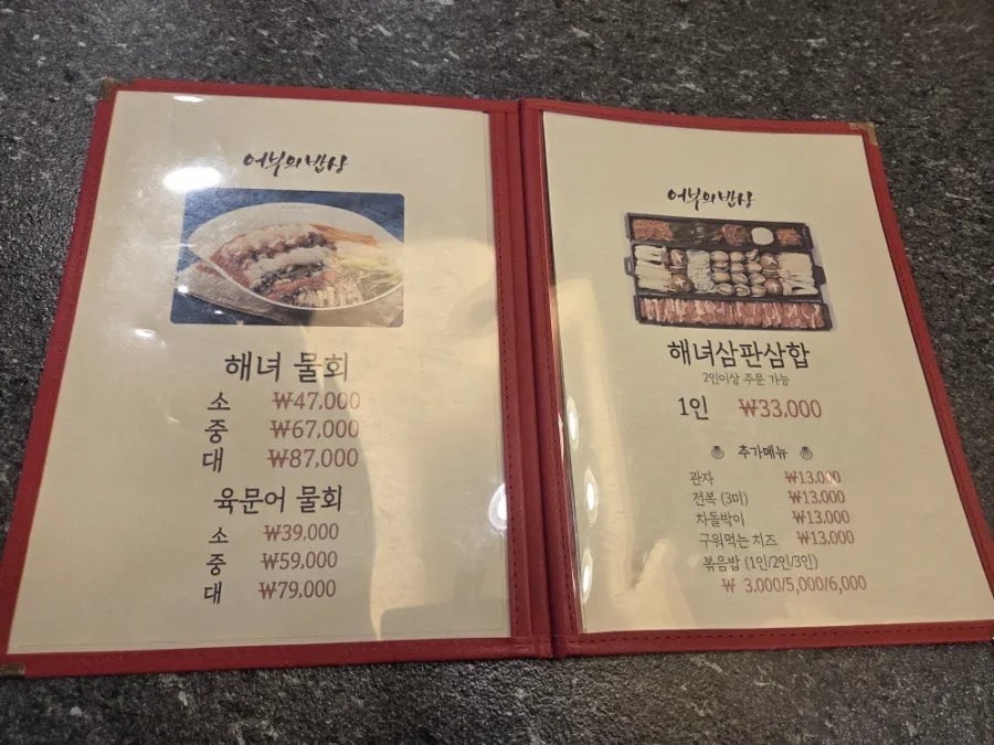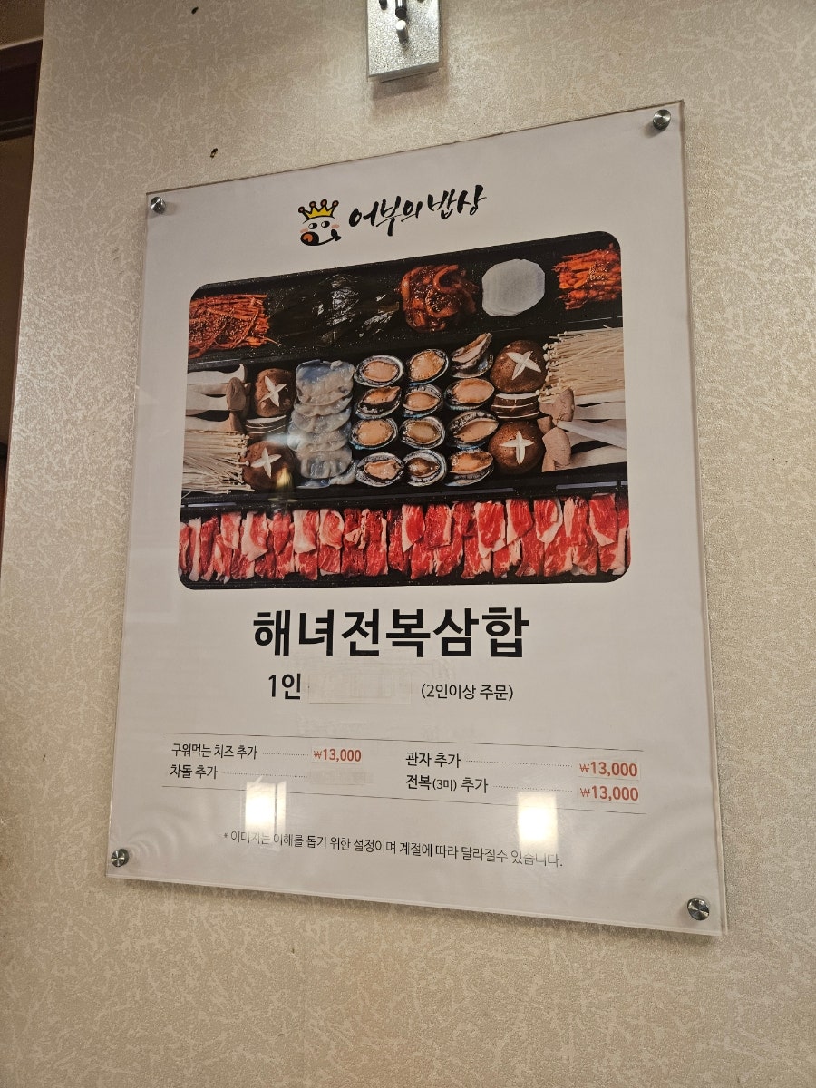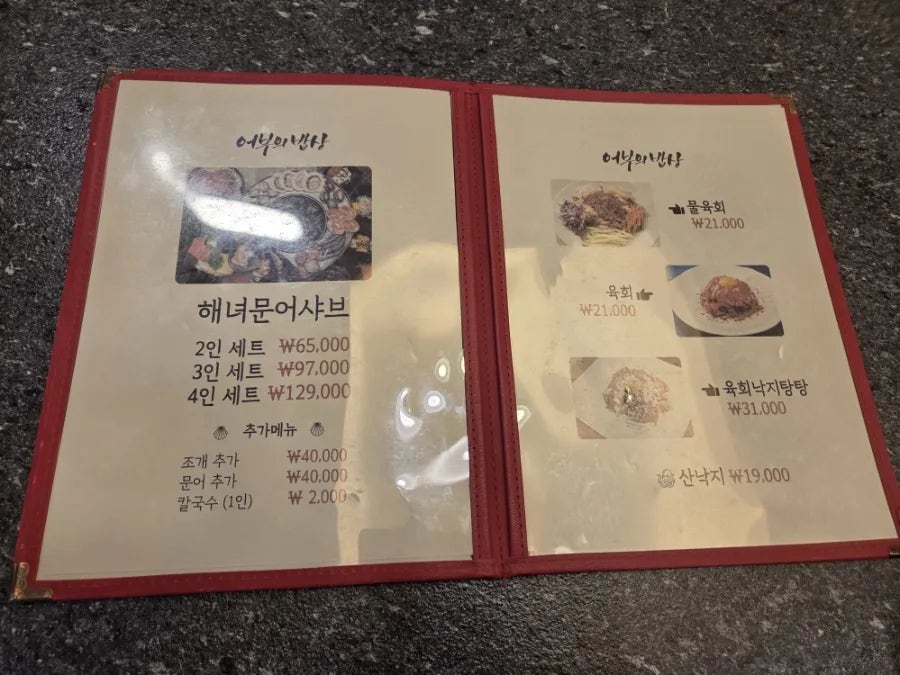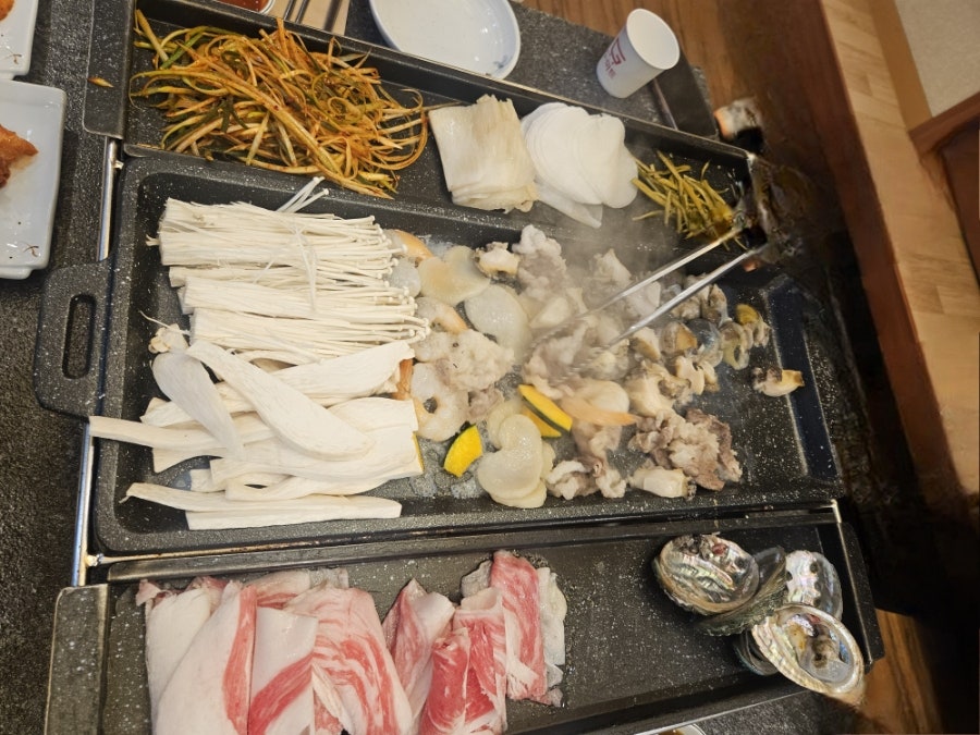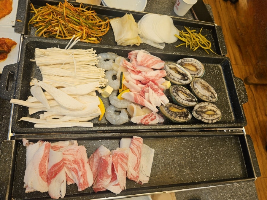 해녀삼판삼합 2인분과 해물샤브샤브 2인분을