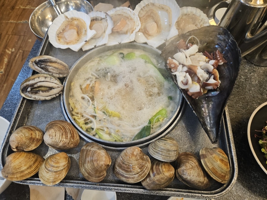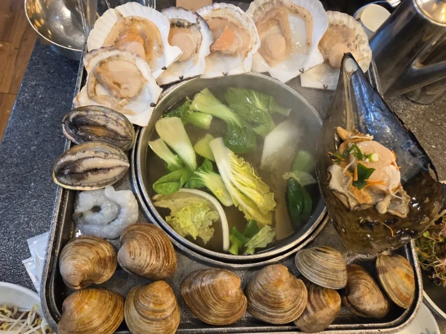 먹어도 되는데 국물이 각종 다양한 조개류들이
