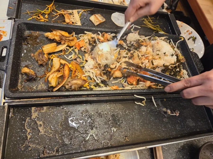 밥과 김치 김가루를 넣어 남아있는 재료들과 함께 직원분이 볶아 주셨는데 볶음밥도 맛있게 먹었어요